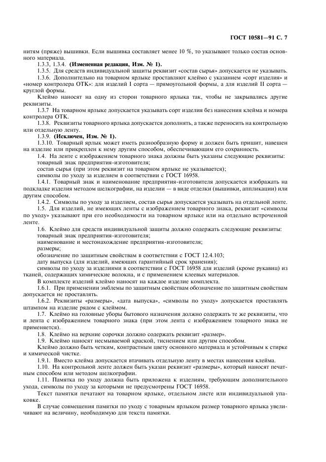 .: Ready-made sewing. Marking, packing, transportation and storage
